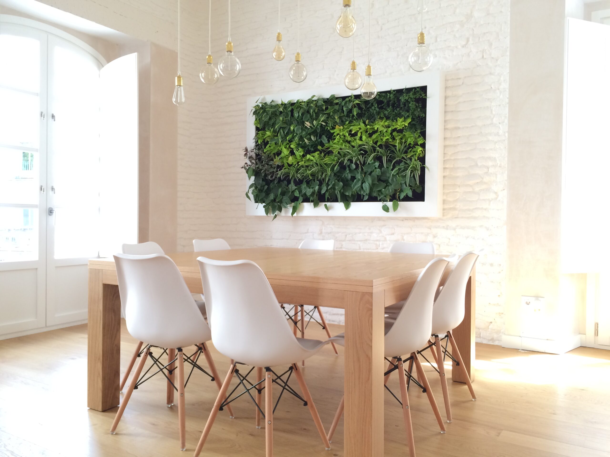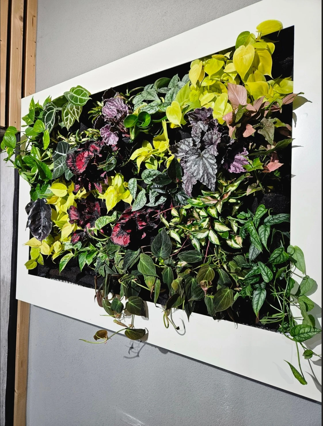 Cadre végétal intérieur basé sur la technologie Fytotextile avec un cadre en fibre de verre et un système d’irrigation fermé automatisé intégré dans le cadre.
